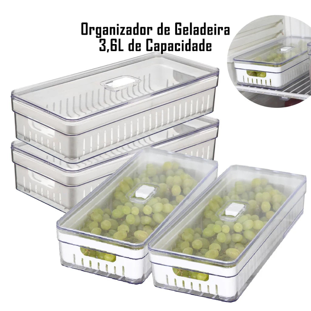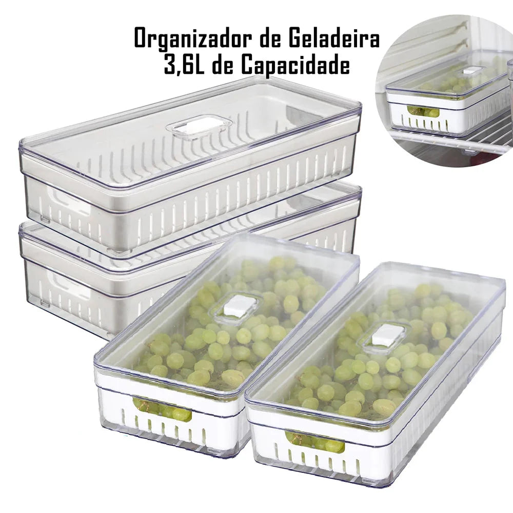 Escolha o organizador ideal para manter seus alimentos frescos e bem organizados. Disponível em kits com 2 ou 4 peças. Se tiver alguma dúvida, nossos especialistas estão à disposição no chat!