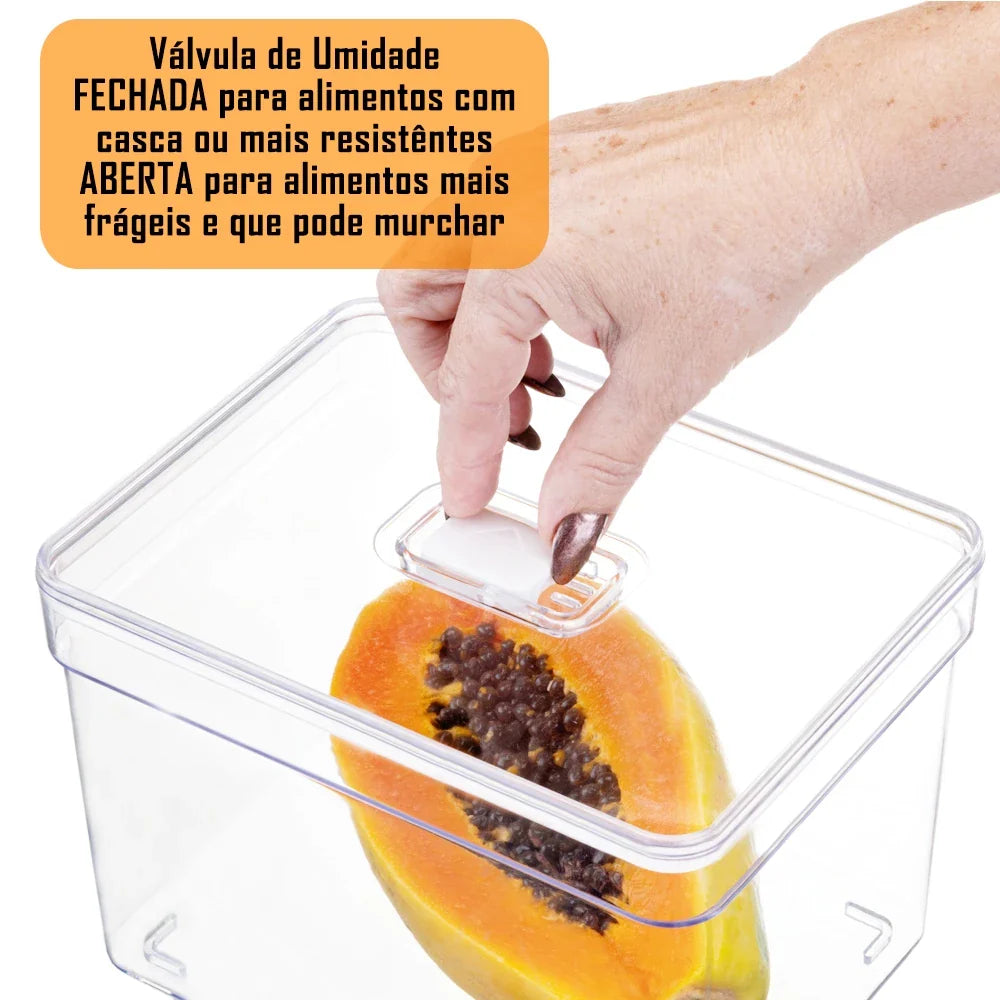 - Praticidade no Uso: Acompanha um respiradouro ajustável que deve ser fechado para vegetais e folhas e aberto para frutas e alimentos com casca.